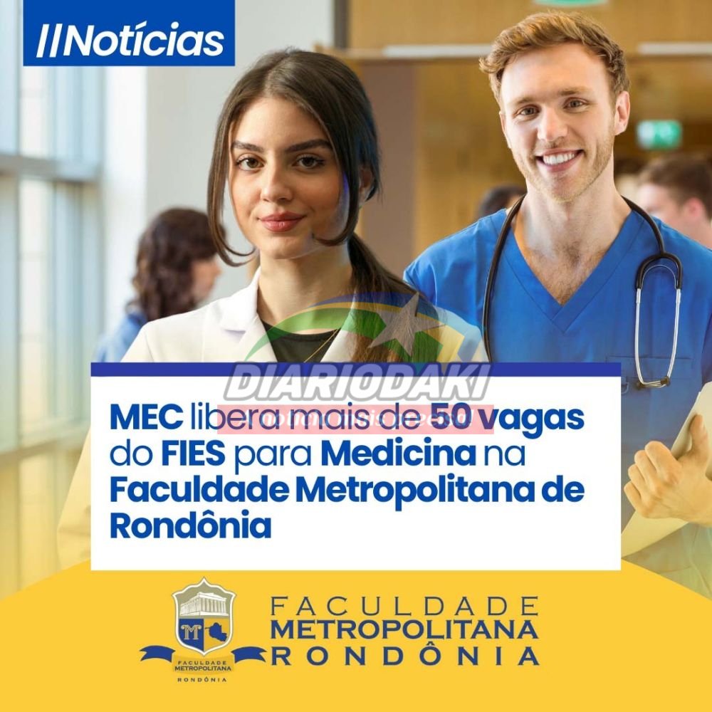 Com a publicação do edital, o MEC liberou mais de 50 vagas do FIES para o curso de Medicina da Faculdade Metropolitana de Rondônia, permitindo que novos estudantes ingressem na graduação por meio do financiamento estudantil federal.